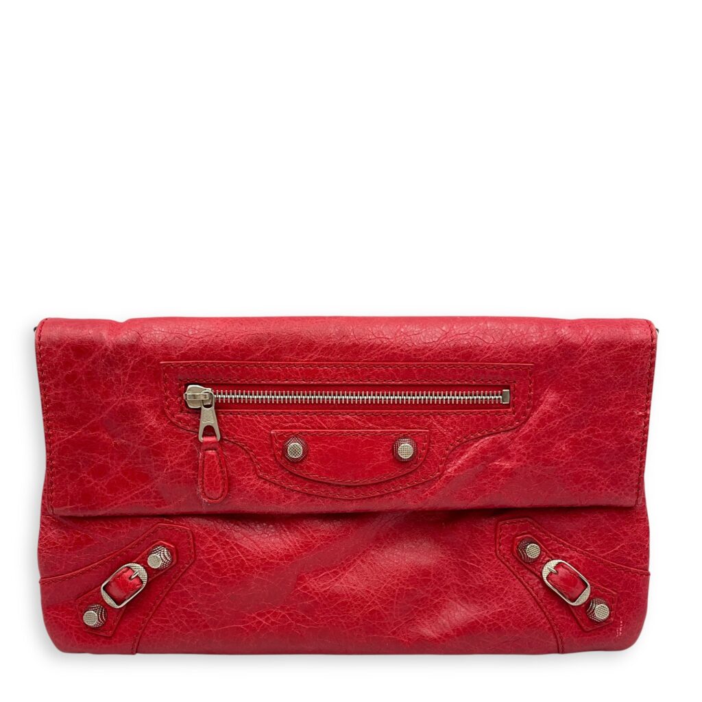 City Pouch Red Crossbody Bag in Distressed Leather, Silver hardware