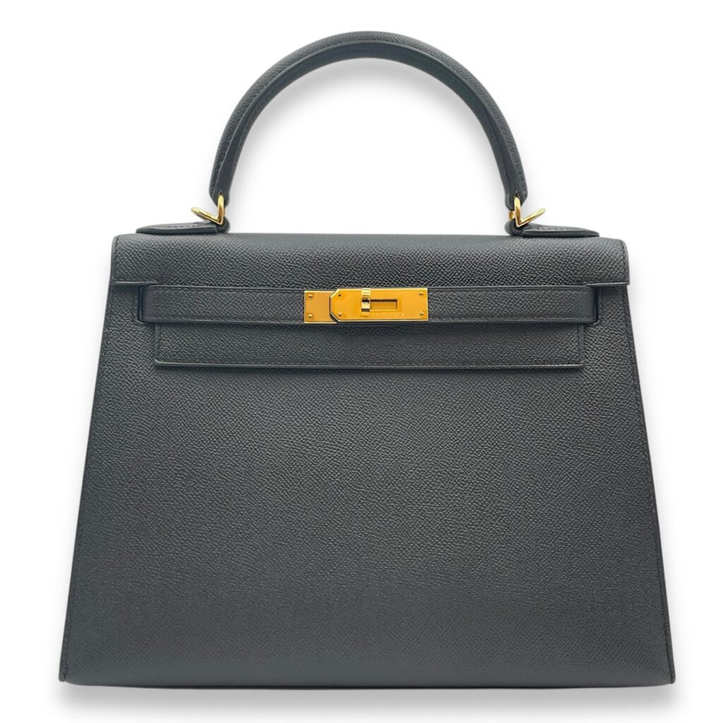 Sellier Kelly 28 Black in Epsom, Gold hardware