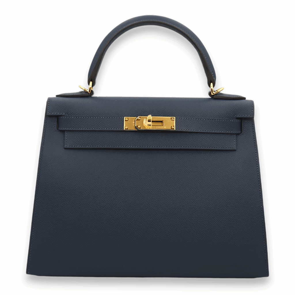 Sellier Kelly 28 Blue De Prusse in Epsom, Gold hardware