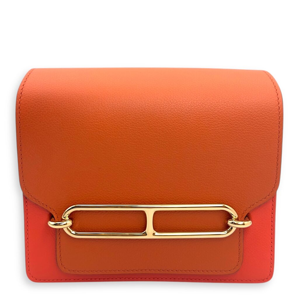 Roulis Bicolore Mini Capucine/Terre Battue in Evercolor, Permabrass hardware