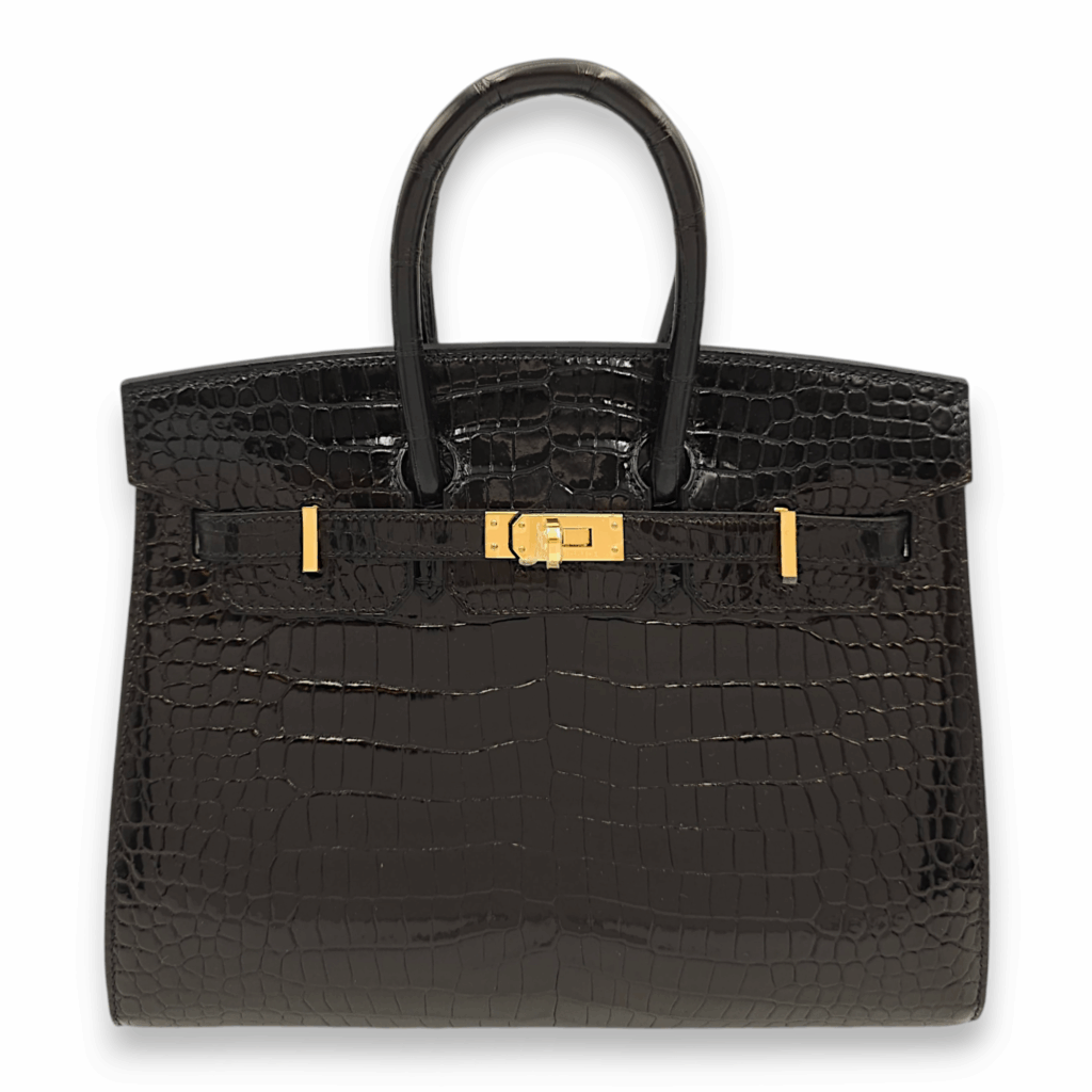 Sellier Birkin 25 Black in Shiny Porosus, Gold hardware
