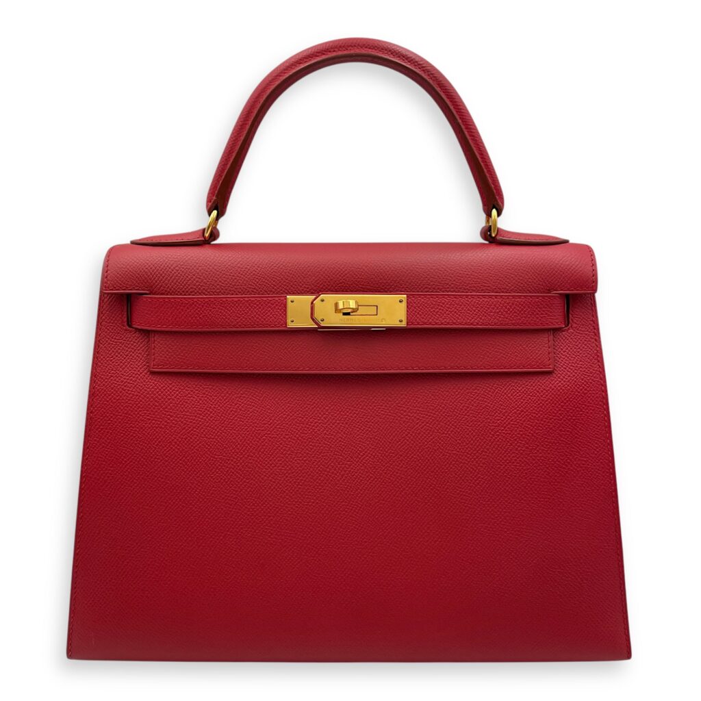 Sellier Birkin 28 Rouge Vif in Courchevel, Gold hardware