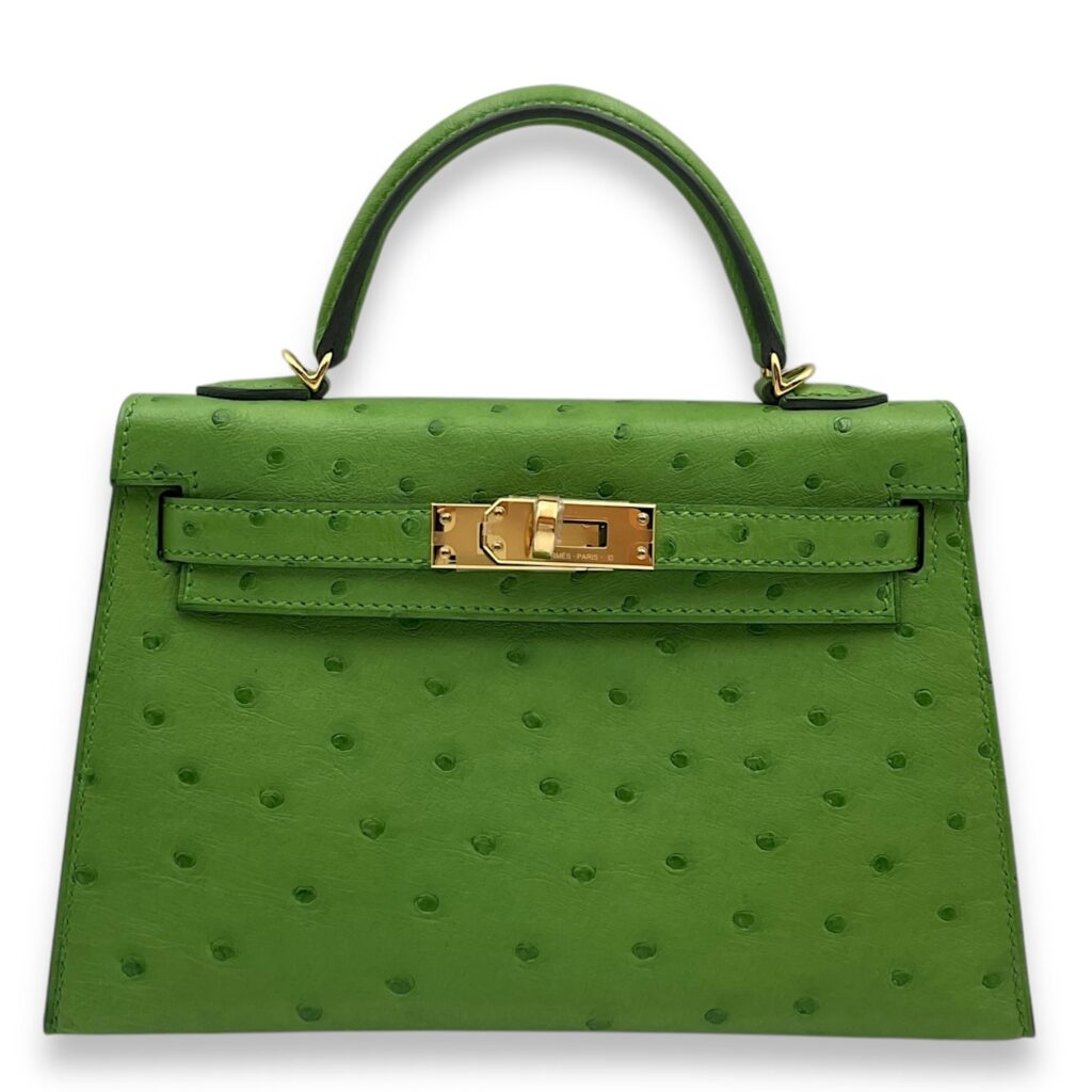 Sellier Kelly 20 Vert Yucca in Ostrich, Gold hardware