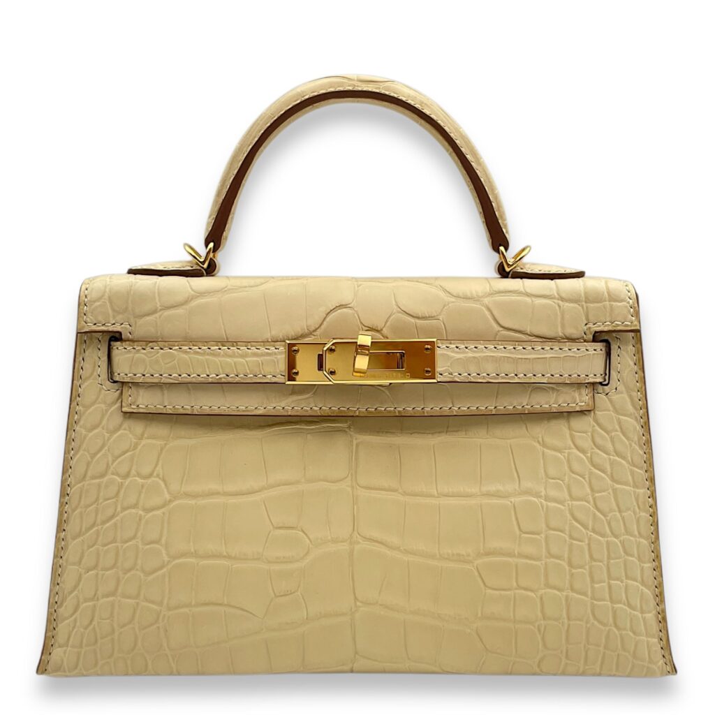 Sellier Kelly 20 Vanille in Matte Alligator, Gold hardware