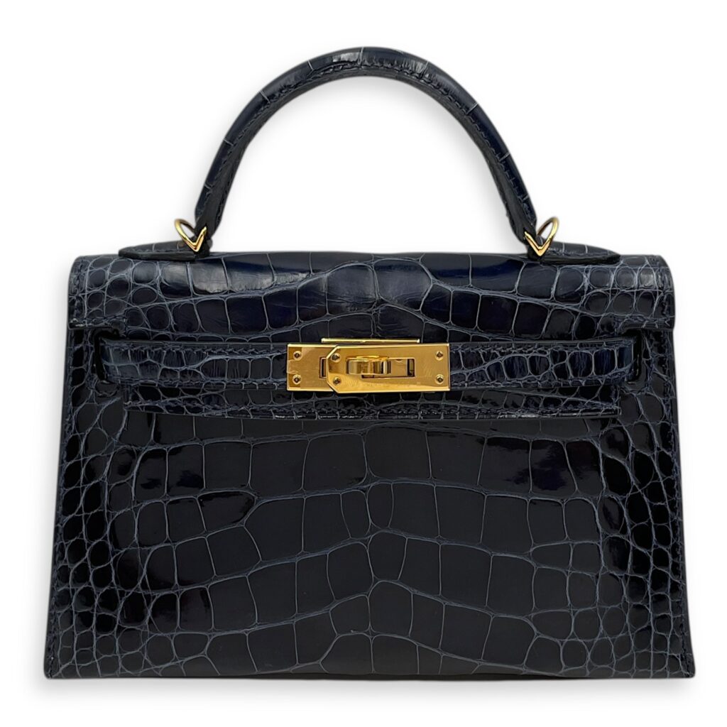 Sellier Kelly 20 Blue Sapphire in Shiny Alligator, Gold hardware