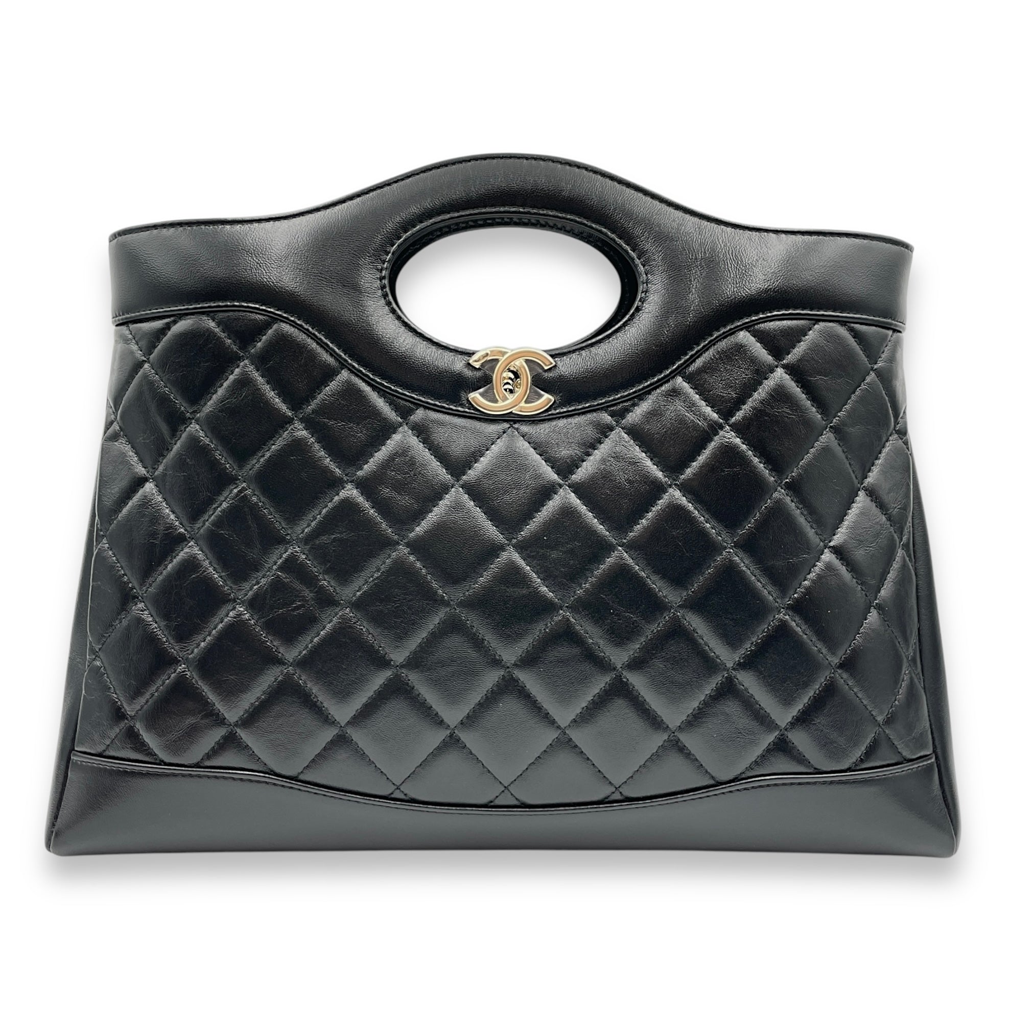 31 Shopping Tote 36x25x7cm Black Shoulder Bag in Shiny lambskin, Gold hardware