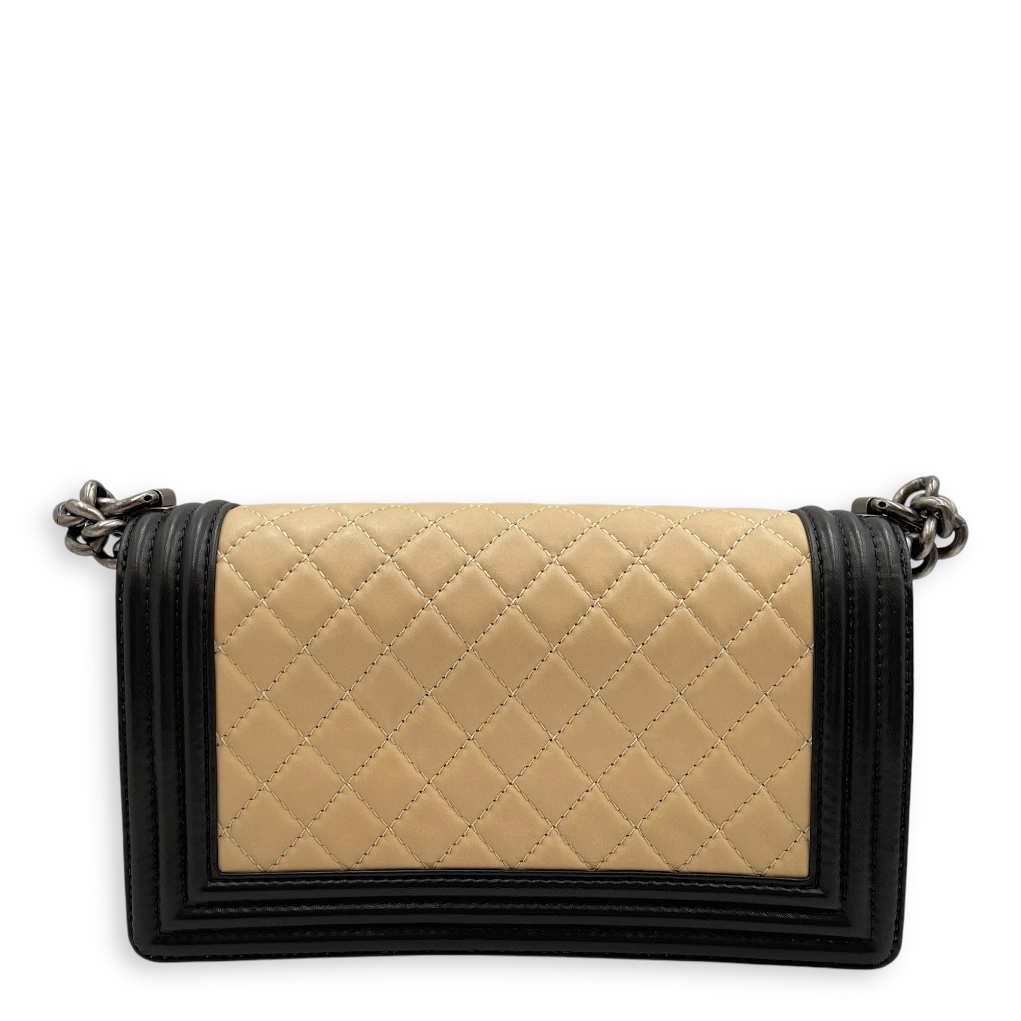 Boy Beige/Black Shoulder Bag in Lambskin, Ruthenium hardware