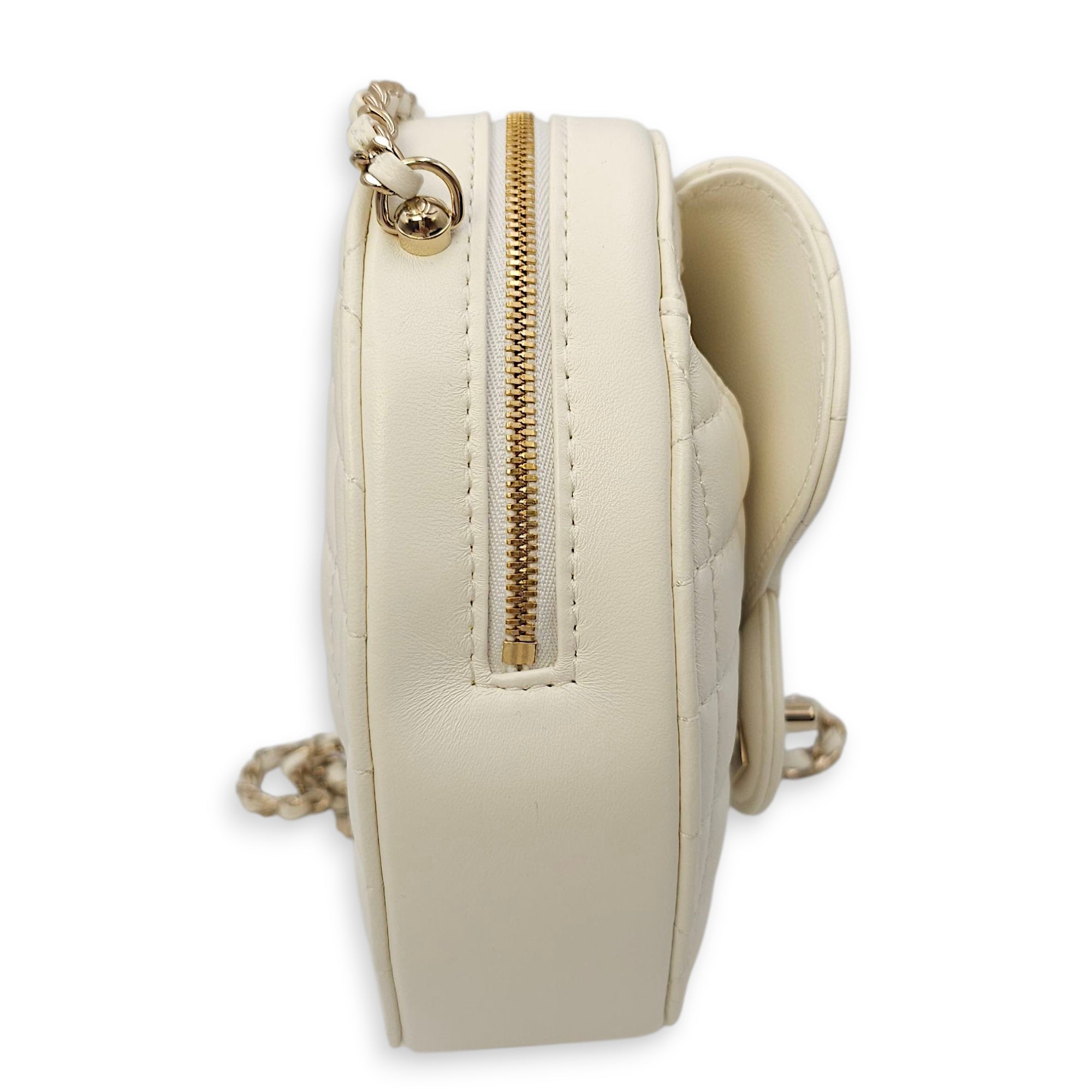 CC White Heart Bag in Lambskin, Champagne hardware