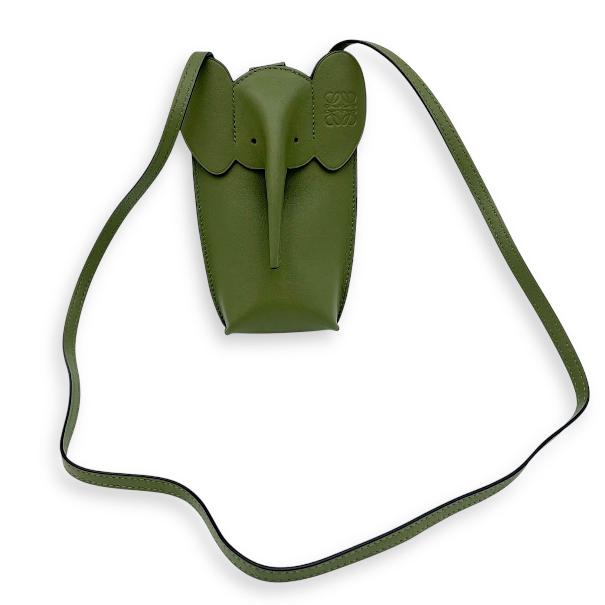 Elephant Pocket Crossbody Bag Green in Calfskin