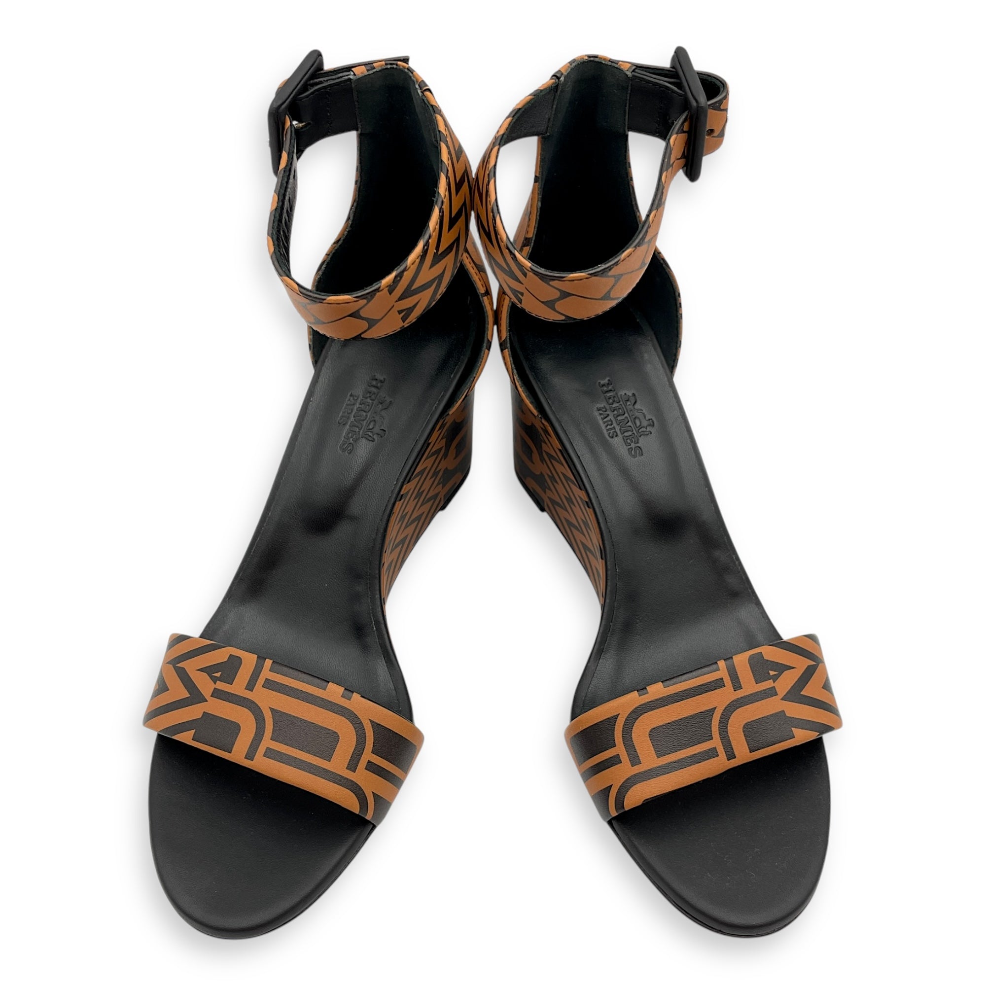 Imprime Acapulco 36 Noir/Natural Wedges in Calfskin