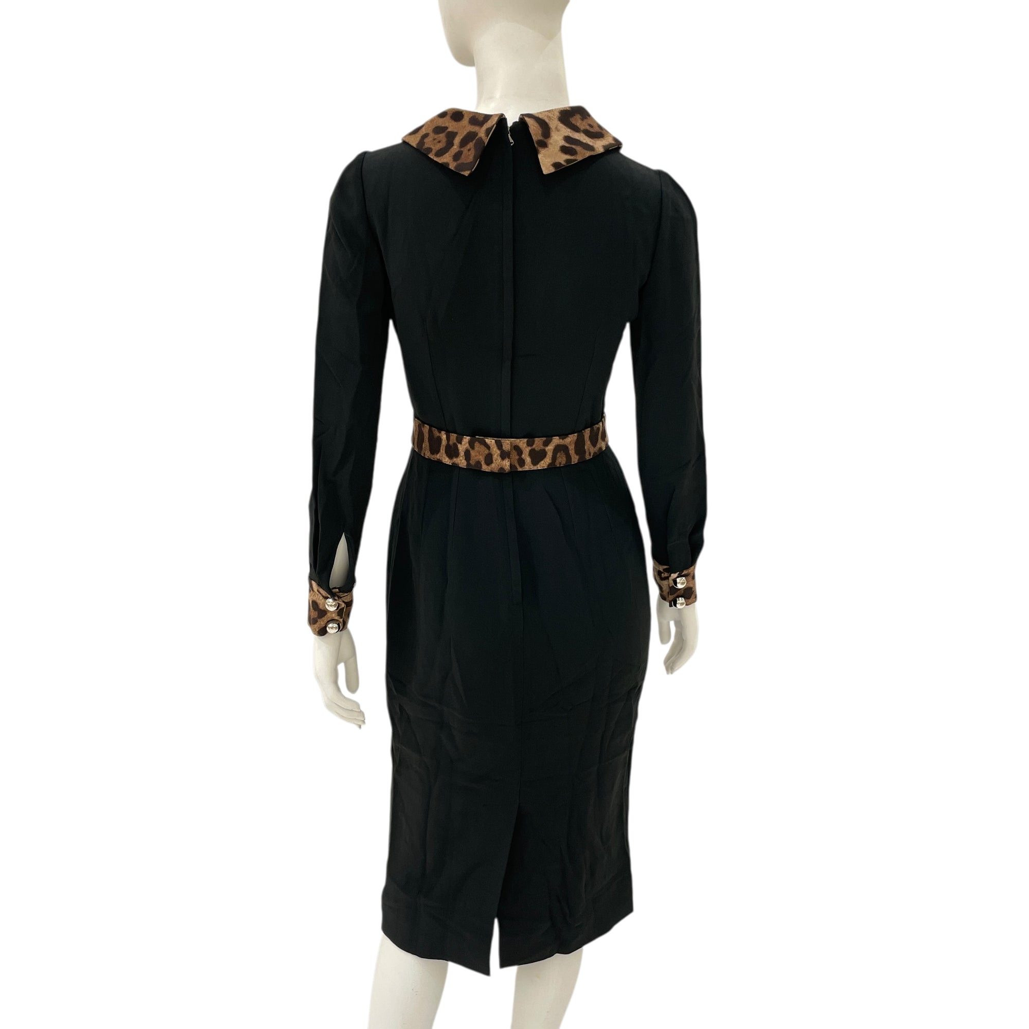 Long Sleeved with Leopard Trim Cady Dress 38 Black Ready-To-Wear in Viscose, Silver hardware
