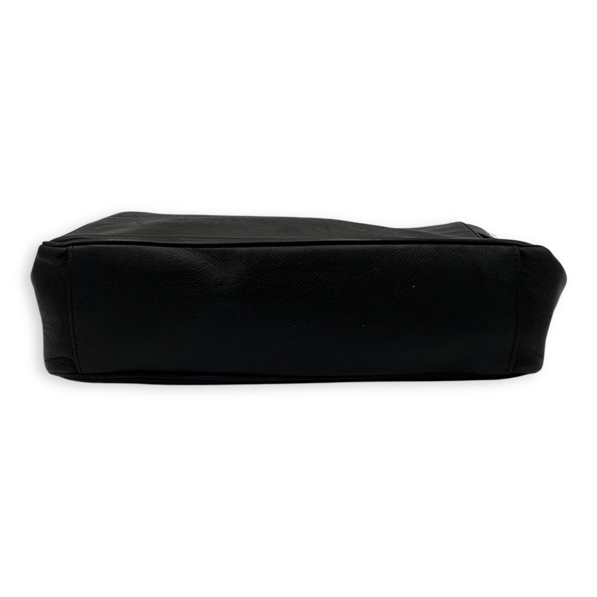 Messenger Crossbody Bag Black in Taiga Leather, Silver hardware