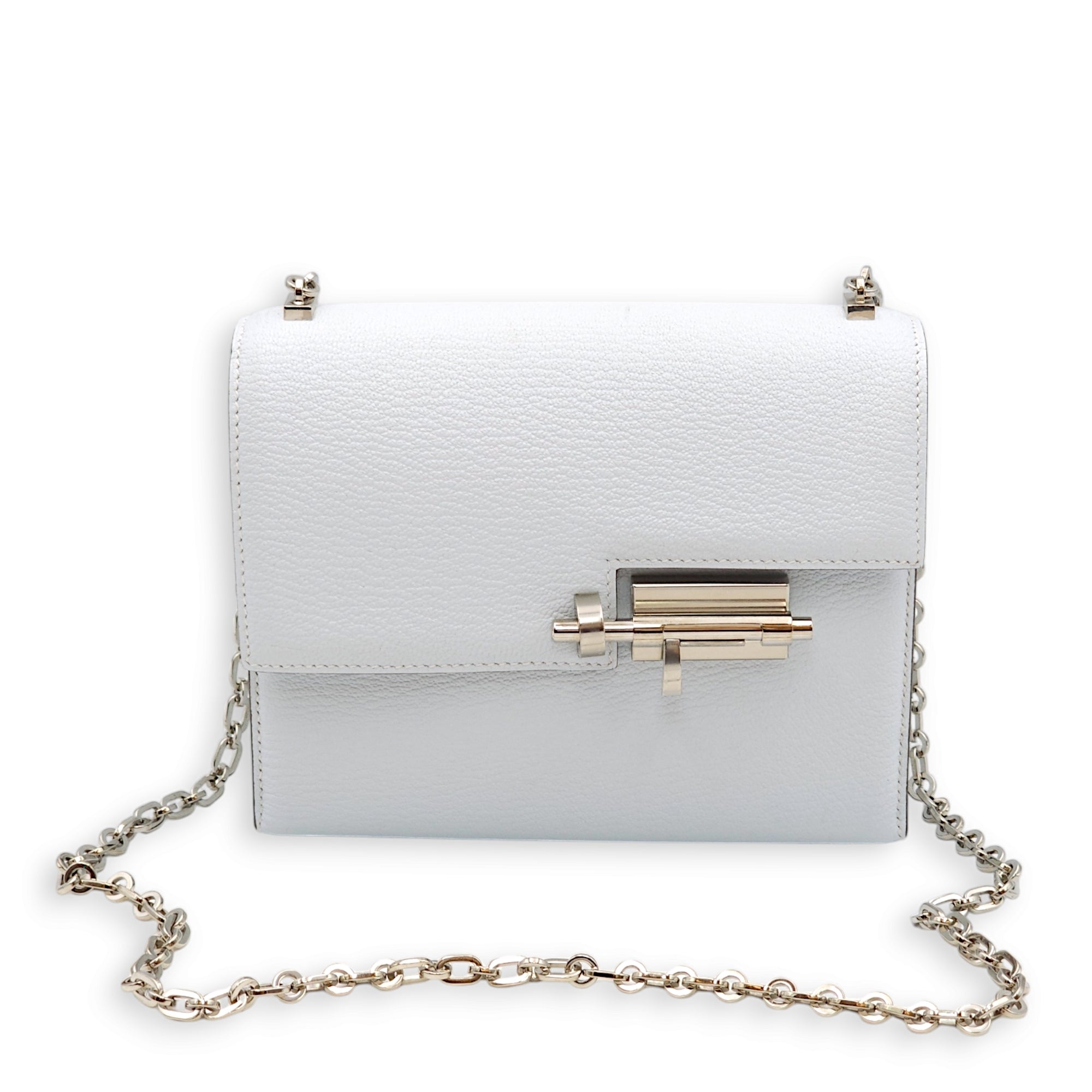Verrou Chaine Mini Blue Brune in Chevre Leather, Palladium hardware
